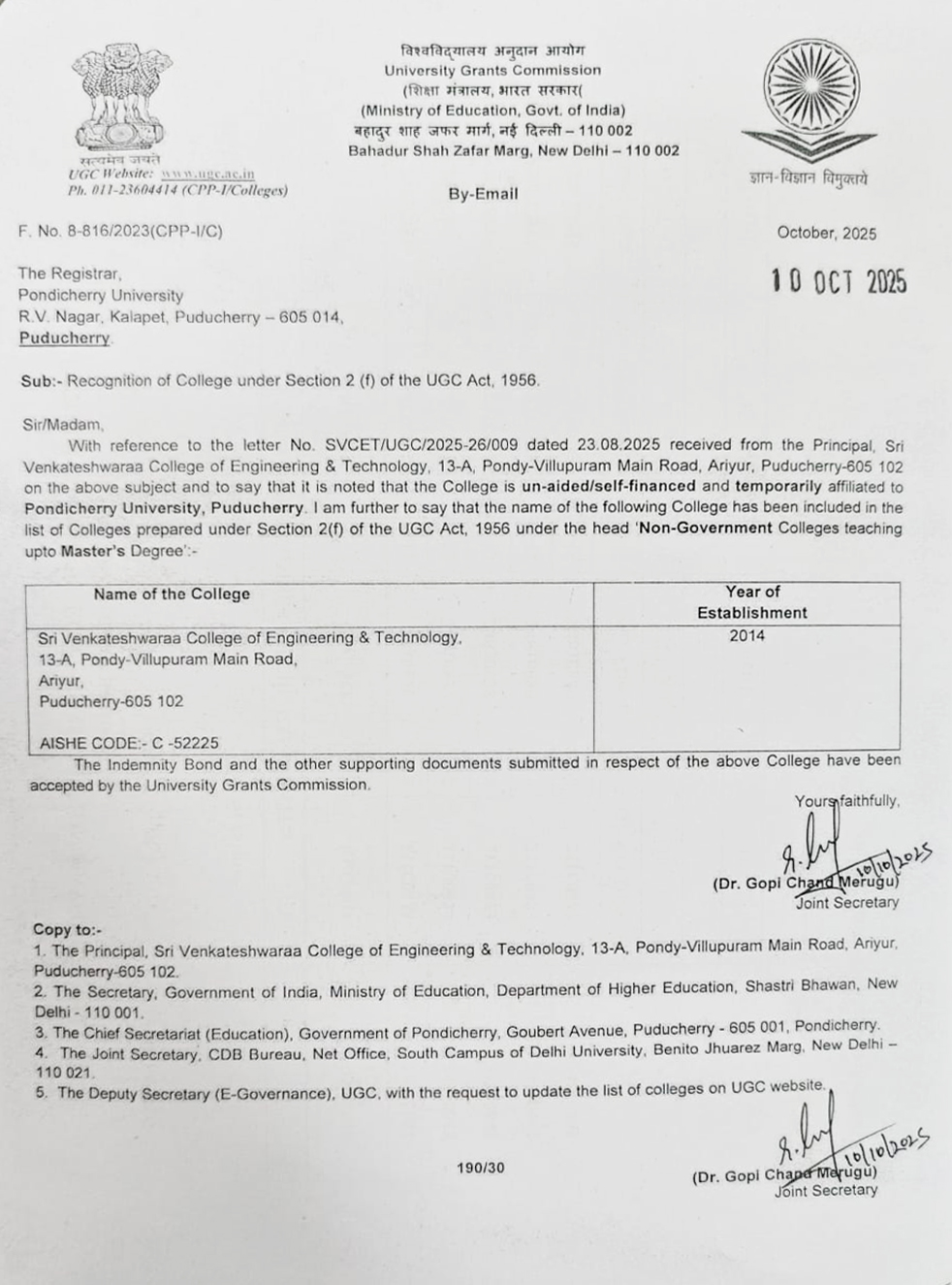 SVCET is affiliated to Pondicherry University and approved by the All India Council for Technical Education (AICTE) , New Delhi.